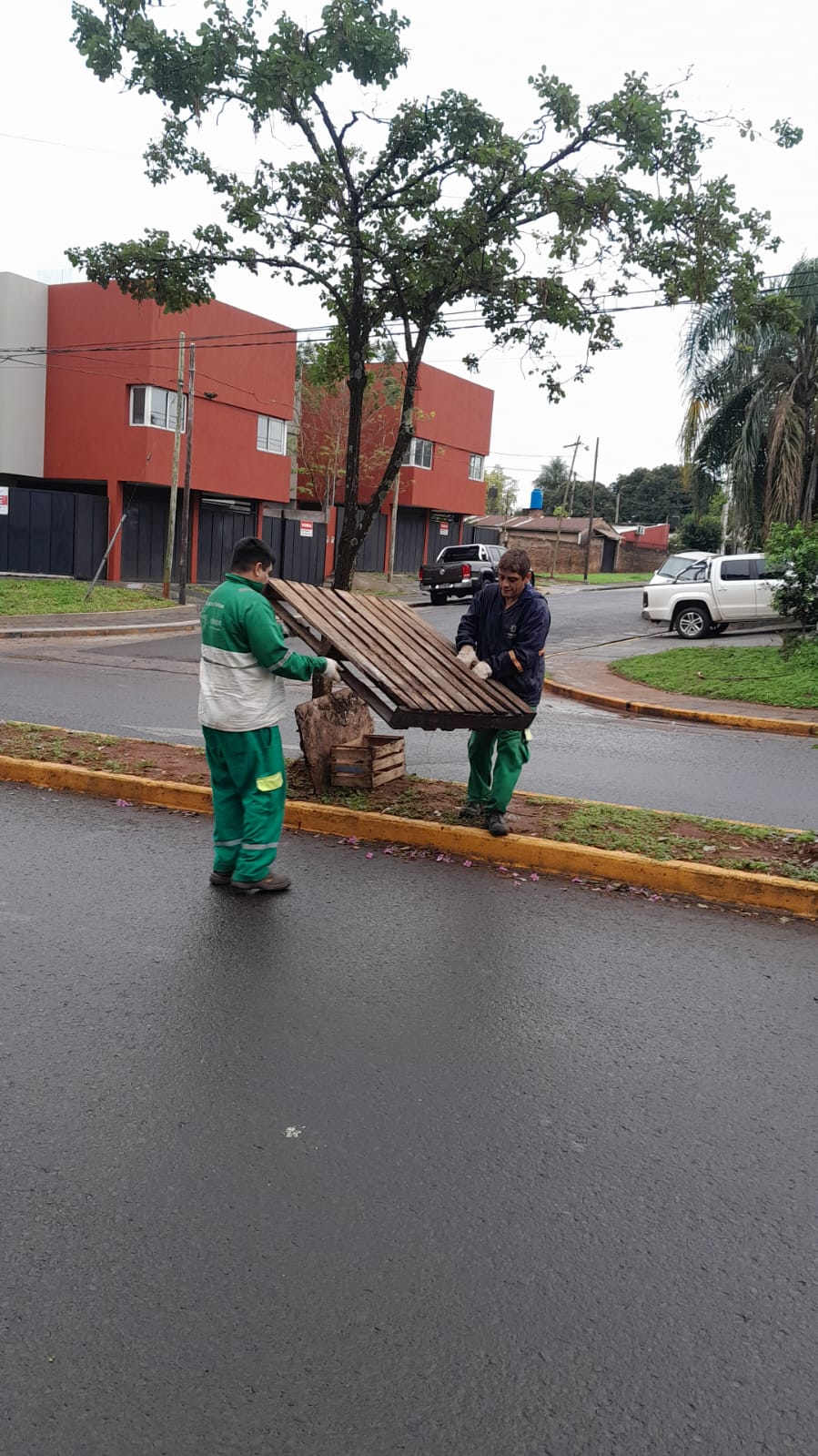 En el día de la fecha, en el turno de la tarde, se realizó blanqueo de contenedores, veredas y recolección de voluminosos.